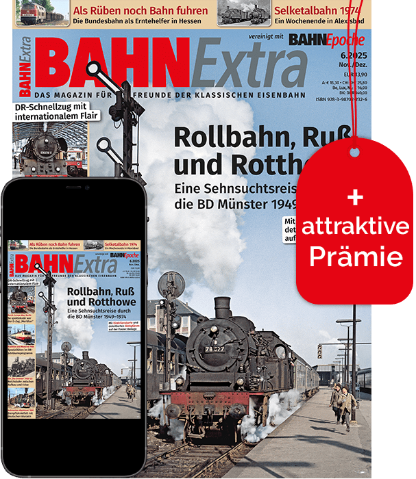 Sichern Sie sich ein ganzes Jahr spannende Reportagen, wertvolle Zeitzeugenberichte und exklusive Bilddokumente. Mit sechs Ausgaben pro Jahr verpassen Sie kein Highlight der reichhaltigen Eisenbahngeschichte. Die Mindestlaufzeit beträgt zwölf Monate, danach können Sie Ihr Abo jederzeit kündigen.