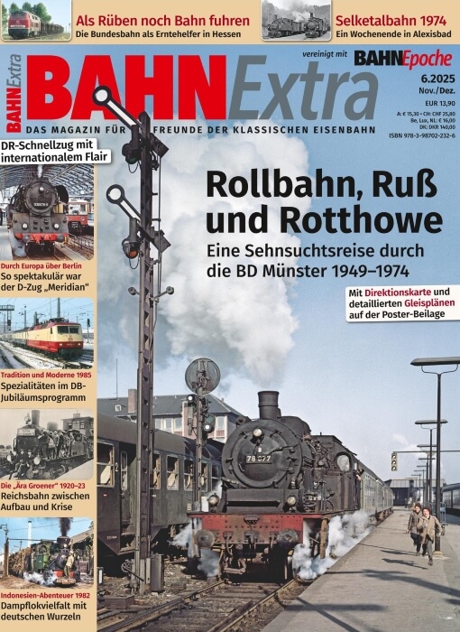 Willkommen bei Bahn Extra, dem Magazin im XXL-Format, das speziell für Freunde der klassischen Eisenbahn geschaffen wurde! Jede Ausgabe von Bahn Extra beleuchtet ein besonders interessantes Thema der Deutschen Eisenbahngeschichte als umfangreichen Schwerpunkt. Tauchen Sie ein in faszinierende Hintergründe, spannende Anekdoten, bewegende Reportagen und authentische Zeitzeugenberichte aus verschiedenen Epochen und Regionen über Strecken, Züge, Fahrzeuge, Eisenbahner, den Bahnbetrieb und den Bahnalltag.