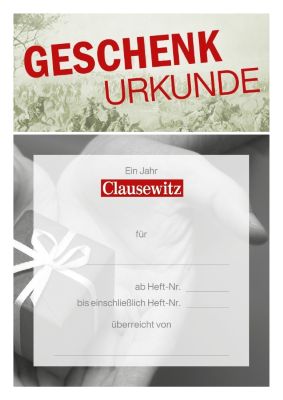 Mit dem Clausewitz - Magazin verschenken Sie pure Leidenschaft. Sie können sich sofort eine Geschenkurkunde ausdrucken und dem Beschenkten überreichen, den Rest übernehmen wir.