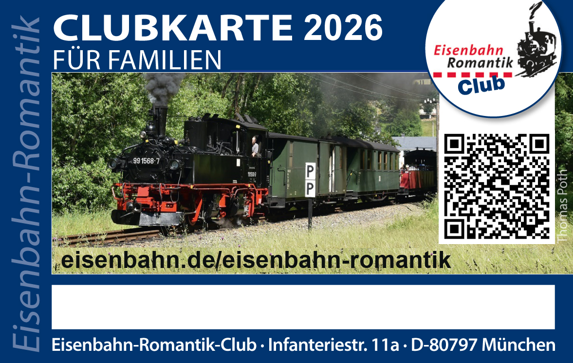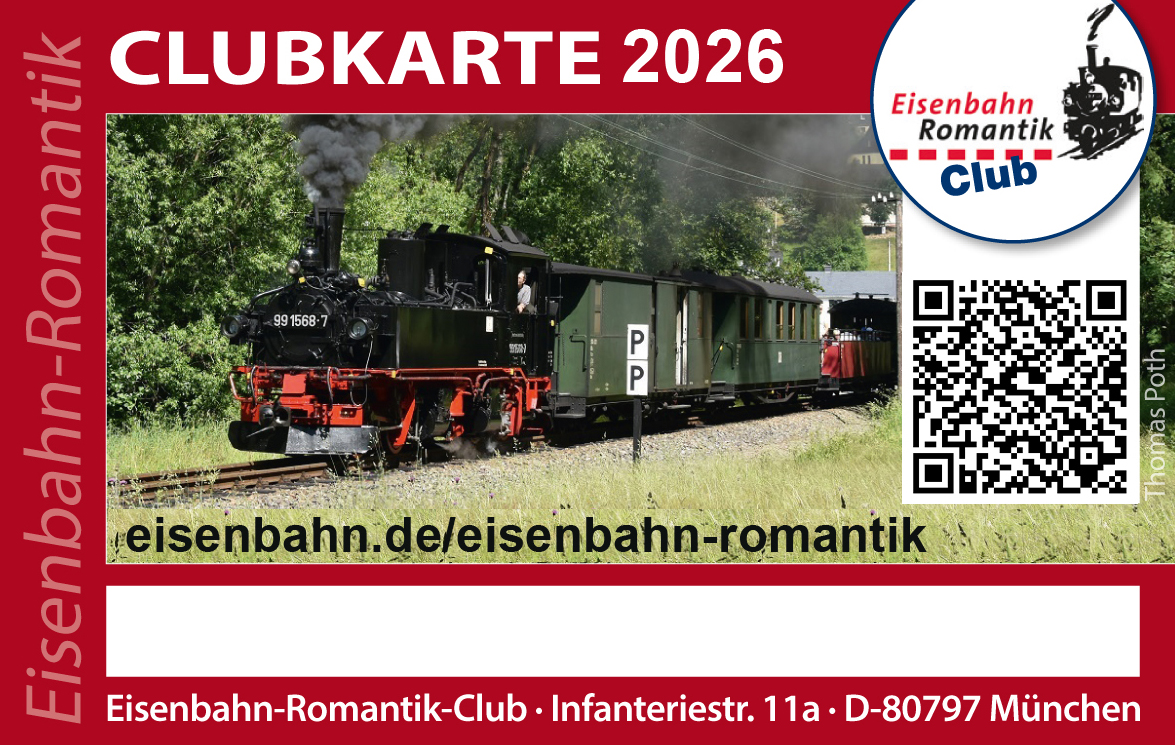 - 10% - Reise-Rabatt auf die Eisenbahn-Romantik-Club-Fahrt 2026 für Eisenbahn-Romantik-Club-Mitglieder (in Planung)