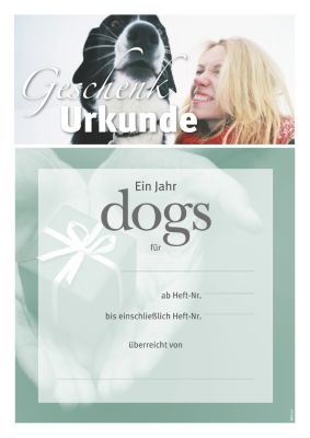 Mit dem dogs-Magazin verschenken Sie pure Leidenschaft. Sie können sich sofort eine Geschenkurkunde ausdrucken und dem Beschenkten überreichen, den Rest übernehmen wir.