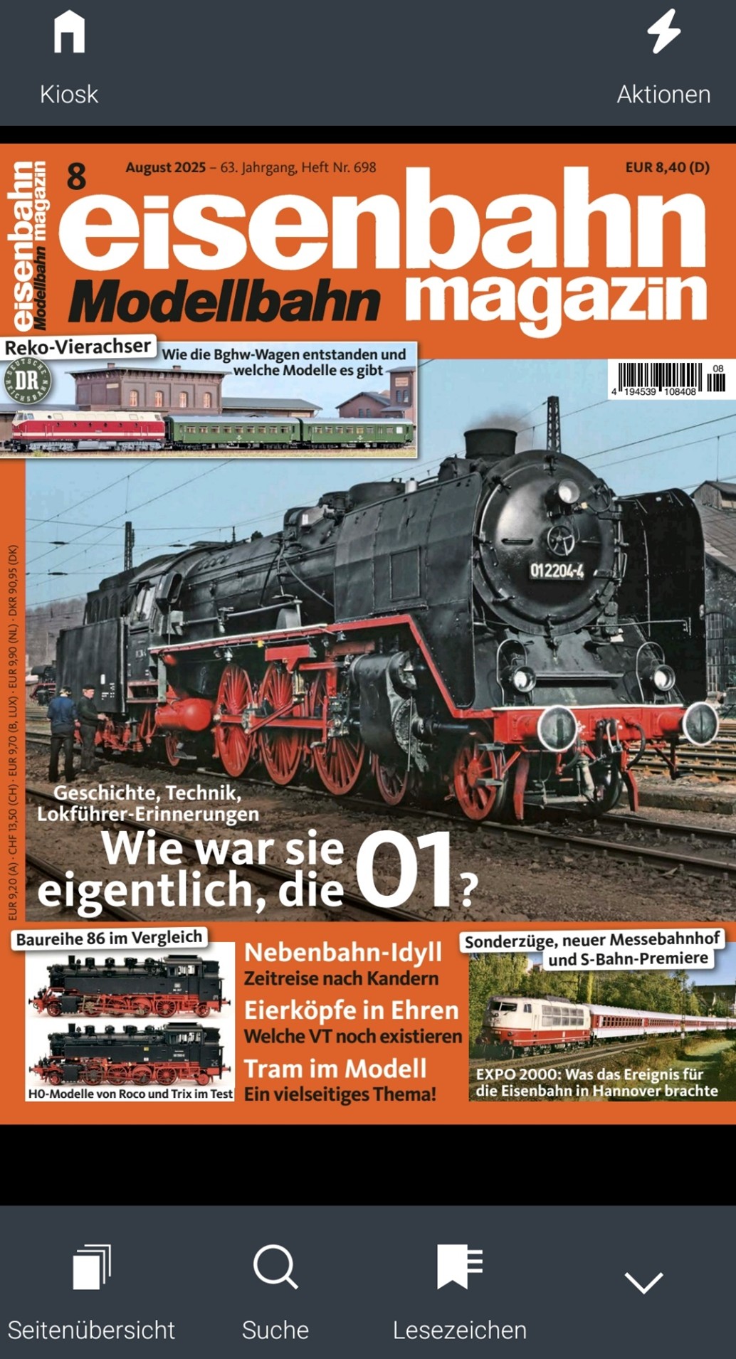 Um eine Ausgabe zu lesen, wechseln Sie über das Menü in den Kiosk.