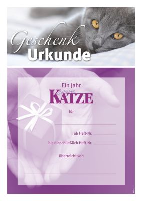 Mit dem Geliebte KATZE - Magazin verschenken Sie pure Leidenschaft. Sie können sich sofort eine Geschenkurkunde ausdrucken und dem Beschenkten überreichen, den Rest übernehmen wir.