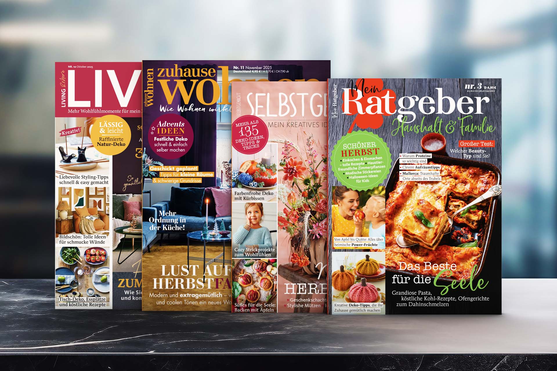 Entdecke Hobbys, erkunde die Welt, erlebe deine Heimat, spüre das Willkommen zu Hause, liebe Tiere und gestalte deine Welt. Sie erfahren hier alles Wissenswerte über unsere Magazine und können Einzelhefte auch als digitalen Download bestellen. Mit unseren attraktiven Einstiegsangeboten können Sie unsere Magazine auch ohne Risiko im Abo testen und dabei sparen. Dazu wartet eine attraktive Auswahl an Dankeschön-Prämien auf Sie. Mit einem Klick auf das Bild kommen Sie zu unseren attraktiven Magazinen.