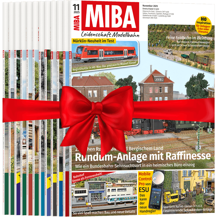 Ein Abonnement von MIBA garantiert Ihnen, dass Sie keine Ausgabe dieses hochwertigen Magazins verpassen. Von der Anlagenplanung und dem Anlagenbau, über akribische und objektive Testberichte, bis hin zu Gebäuden- und Landschaftsbau - MIBA deckt jeden Aspekt der Modelleisenbahn detailliert ab.