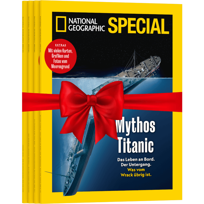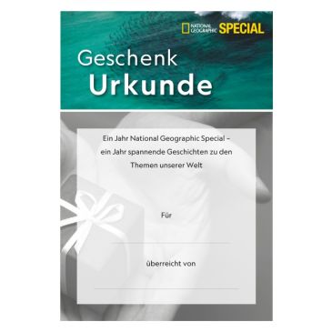 Mit dem NATIONAL GEOGRAPHIC SPECIAL verschenken Sie ein Jahr Lesefreude pur. Vier Mal pro Jahr inszeniert die Redaktion die bewegendsten Geschichten mit den faszinierendsten Fotos aus den letzten 130 Jahren von NATIONAL GEOGRAPHIC.