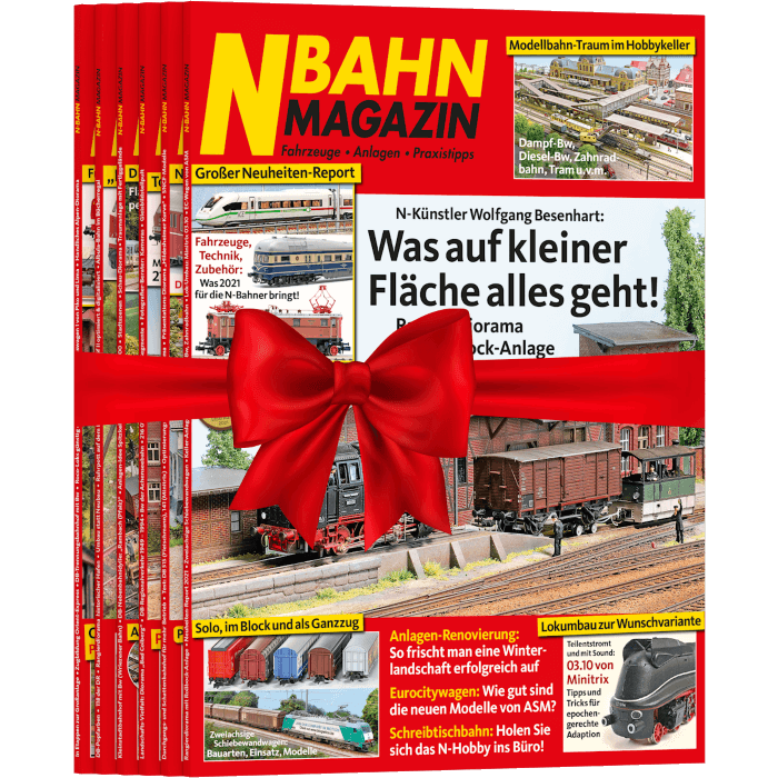 Das N-Bahn Magazin berichtet alle zwei Monate umfassend über Fahrzeug- und Zubehörneuheiten im Maßstab 1:160 und versorgt alle N-Modellbahner darüber hinaus mit Tipps, Tricks und viel Nutzwert.
