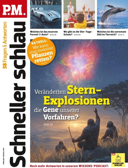 P.M. SCHNELLER SCHLAU, das ehemals unter dem Namen P.M. FRAGEN & ANTWORTEN bekannt war, ist das Turbomagazin für alle Wissbegierigen, die schnelle und präzise Informationen schätzen. Auch mit neuem Namen bleibt das Konzept unverändert: Monat für Monat erhalten Sie kurze und spannende Texte, die kompetent Antworten auf Fragen aus unterschiedlichsten Bereichen wie Wissenschaft, Gesundheit, Geschichte, Politik, Natur, Kultur, Psychologie, Freizeit, Gesellschaft und Style geben. Bewährtes Layout und Inhalt garantieren weiterhin hohe Qualität und lesenswerte Inhalte.