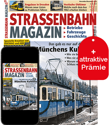 Möchten Sie das Strassenbahn Magazin erst einmal testen? Dann ist unser Probe-Abo genau das Richtige für Sie. Sie erhalten drei Ausgaben zum günstigen Preis und können nach Ablauf der Mindestlaufzeit jederzeit kündigen. So können Sie sich selbst von der Qualität und Tiefe der Berichterstattung überzeugen.